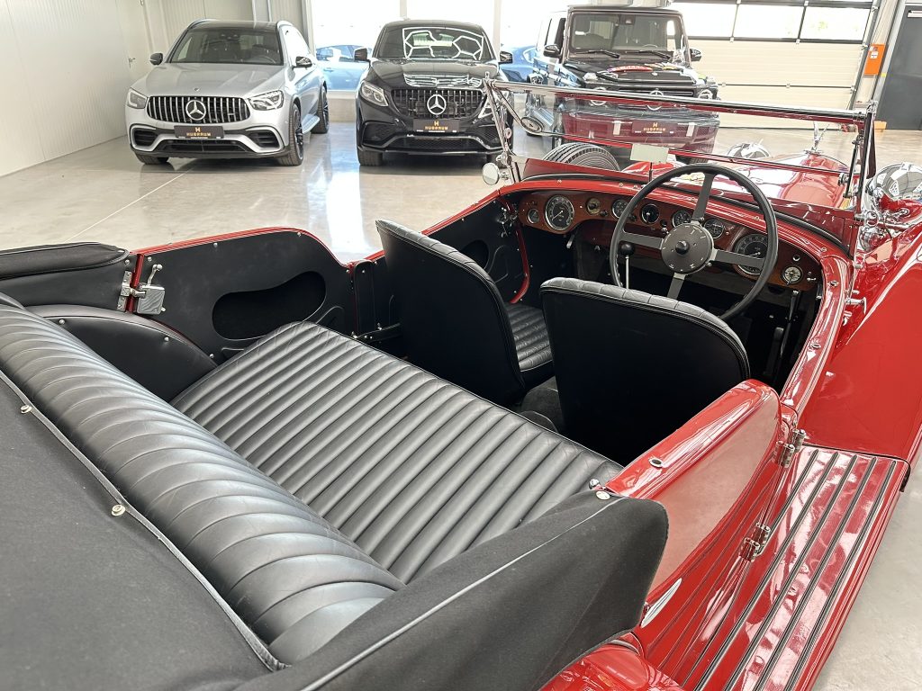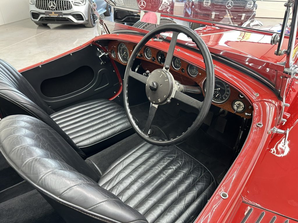 Heute präsentiert sich dieser wunderschöne Speed 25 nach erfolgter früherer Restaurierung in zeitgenössisch roter Lackierung gepaart mit einer schwarzen Lederinnenausstattung, beides mit wunderbarer Patina versehen und äußerst authentisch.