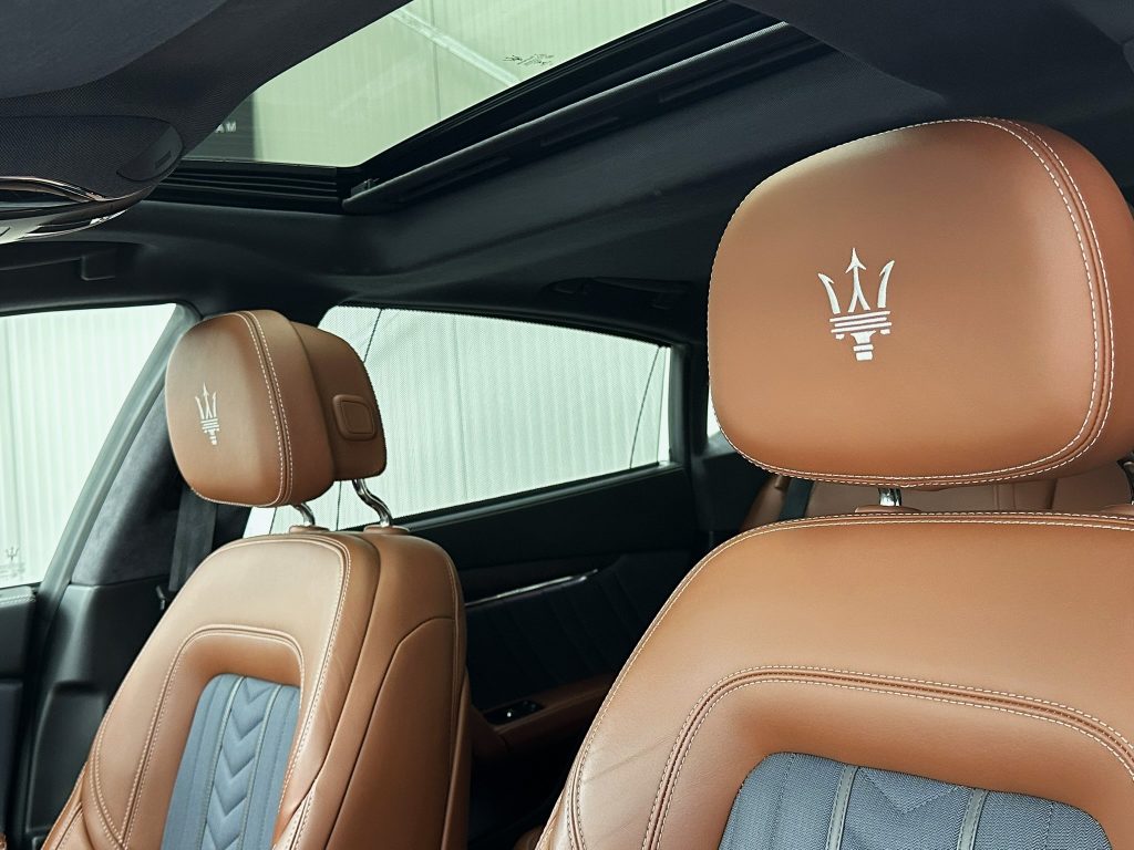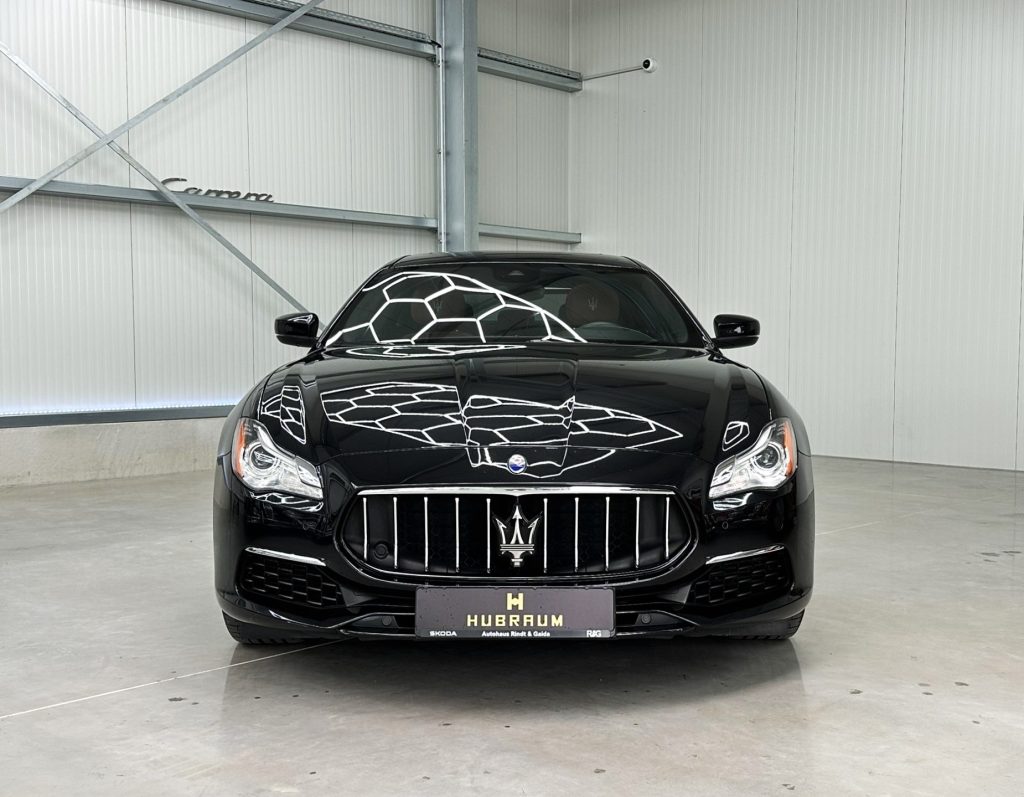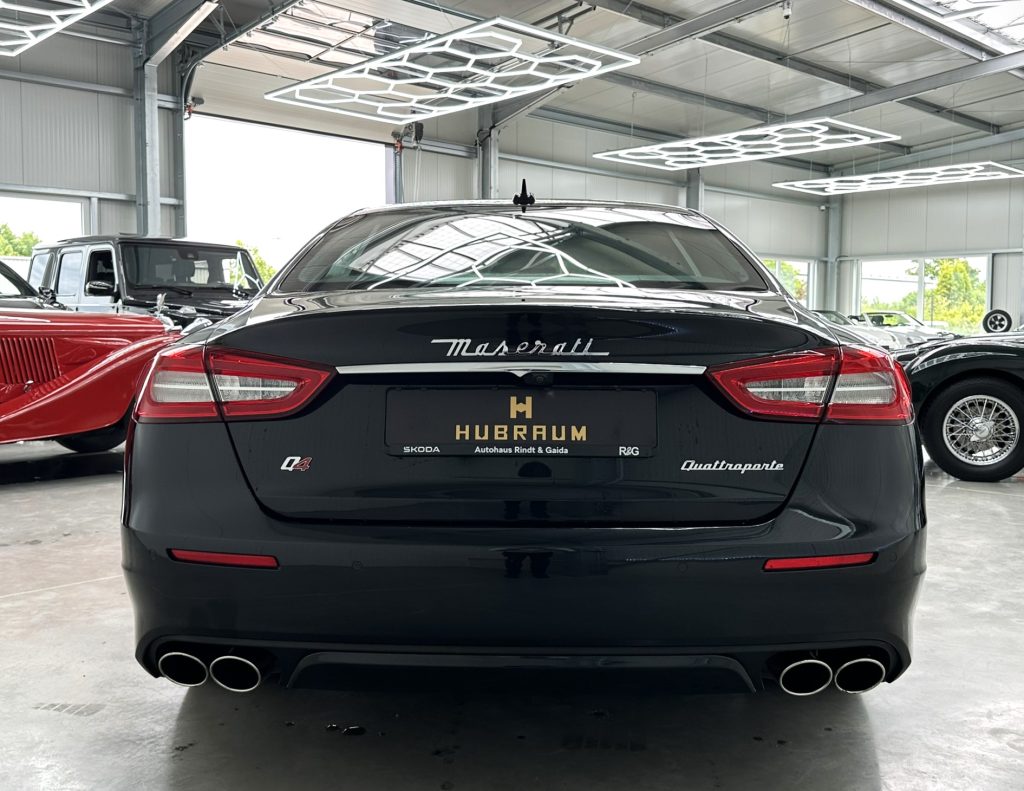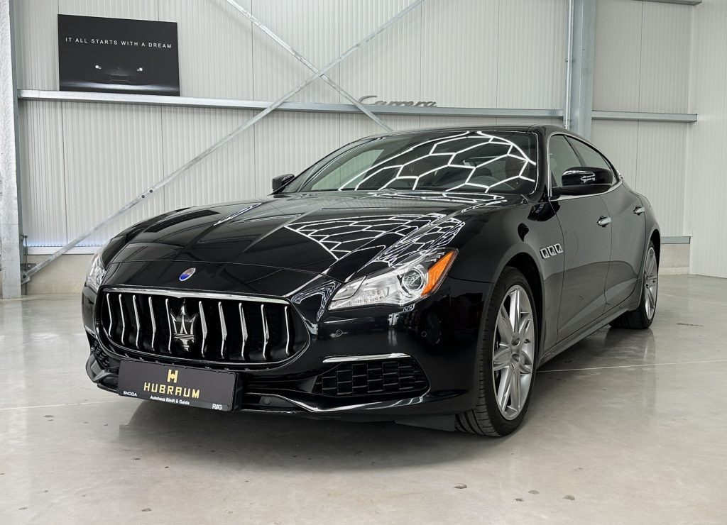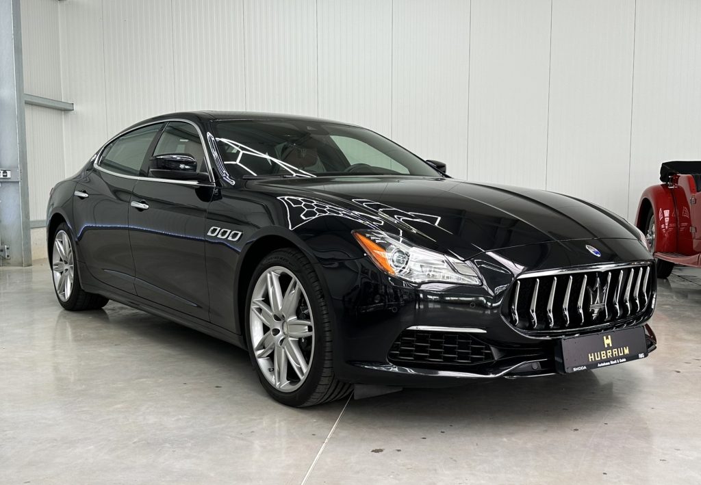 Airbag Fahrer-/Beifahrerseite und Seitenairbag vorn, Ambiente-Beleuchtung, Antriebsart: Allradantrieb, Auspuffanlage (Doppelauspuffblende) mit Endrohre verchromt, Außenspiegel elektr. verstell-, heiz- und anklappbar, Außenspiegel mit Abblendautomatik, Außentemperaturanzeige, Bordcomputer mit Farbdisplay, Bremsanlage: Brembo, Bremsassistent (HBA), Doppelverglasung, Easy-Entry / Easy-Exit Funktion, Einparkhilfe vorn und hinten, Elektr. Bremskraftverteilung (EBD), Elektron. Traktionskontrolle, Fahrassistenz-System: Berganfahrhilfe, Fahrassistenz-System: Notbrems-Assistent (BAS), Fahrmodusschalter, Fahrwerk elektronisch geregelt (Skyhook), Fensterheber elektrisch vorn + hinten, Fußmatten Velours, Getriebe Automatik - mit manueller Schaltmöglichkeit (8-Stufen), Heckleuchten LED, Heckscheibe heizbar, Innenausstattung: Interieureinlagen Edelholz Radica, Innenausstattung: Leder - erweiterter Umfang, Innenausstattung: Leder Poltrona FRAU, Innenspiegel mit Abblendautomatik, Isofix-Aufnahmen für Kindersitz an Rücksitz, Karosserie: 4-türig, Keyless-Entry, Klimaautomatik 2-Zonen, Kopf-Airbag-System (Windowbag), Kopfstützen mit Geprägter Dreizack, Lenkrad (Sport/Leder - 3-Speichen) mit Multifunktion, Lenksäule (Lenkrad) elektr. verstellbar (vertikal / axial), LM-Felgen, Matrix-LED-Scheinwerfer, Mittelarmlehne hinten mit Getränkehalter, USB-Anschluss und 12V-Anschluß, Mittelarmlehne vorn mit klimatisiertem Staufach und 12V-Anschluß, Modellpflege, Motor 3,0 Ltr. - 316 kW V6 TwinTurbo KAT, Motor-Schleppmoment-Regulator (MSR), Multimedia-System Maserati Touch Control (inkl. 8,4 Zoll Touchscreen-Farbdisplay, DVD-Player, SD-Karten-Schnittstelle), Parkbremse elektrisch (EPB), Reifen-Reparaturset, Reifendruck-Kontrollsystem, Rücksitzlehne geteilt/klappbar (60:40), Schadstoffarm nach Abgasnorm Euro 6, Schalt-/Wählhebelgriff Leder, Scheibenwaschdüsen heizbar, Scheinwerfer-Reinigungsanlage (SRA) heizbar, Sitze vorn elektr. verstellbar (links mit Memory), Sitzheizung vorn, Sonnenschutzrollo an Seitenscheiben hinten, elektrisch, Sound-System Harman-Kardon Premium, Sprachbedienung Smart Personal Assistent (SIRI), Start-Stop-Knopf, Start/Stop-Anlage, Tagfahrlicht LED
