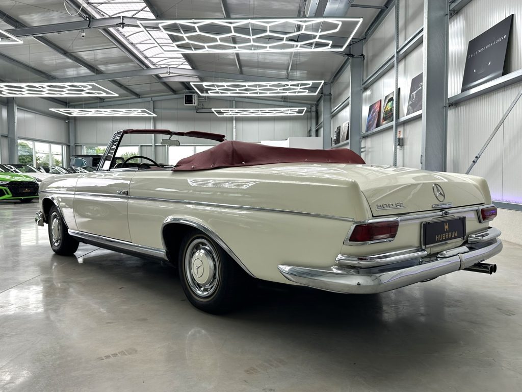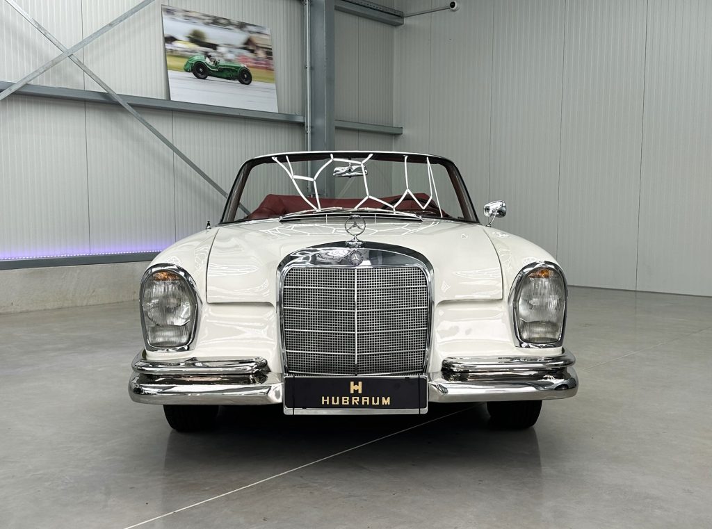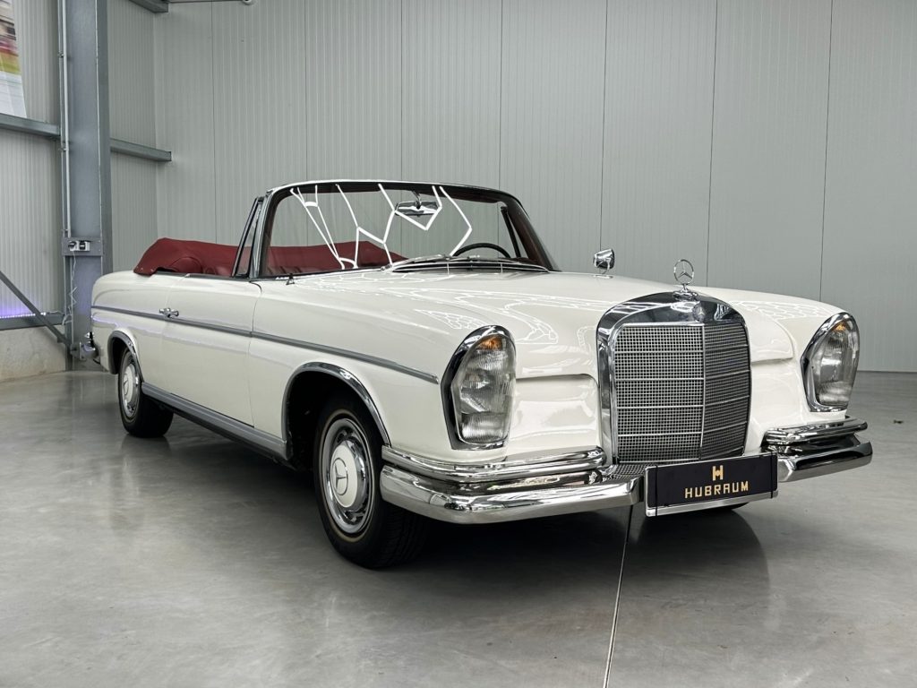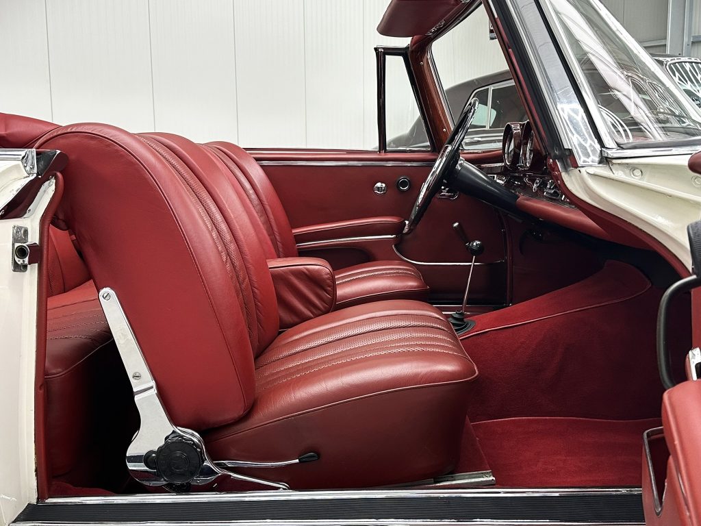 Der Wagen erhielt vor Jahren eine Komplettlackierung in Mercedes-Weiß (050) und befindet sich ansonsten in ausgezeichnetem, originalem Erhaltungszustand. Die roten Ledersitze präsentieren sich mit der gleichen Patina wie bei Masons ersten Ausfahrten, denn der Klassiker stand stets trocken und wurde regelmäßig gewartet. Die hydraulische Niveauregulierung des W112-Fahrwerks garantiert höchsten Komfort, während die 185 PS und die mechanische Einspritzung souveräne Autobahnfahrten ermöglichen. Das original verstellbare Verdeck schließt dicht und schützt zuverlässig vor Regen und Wind.