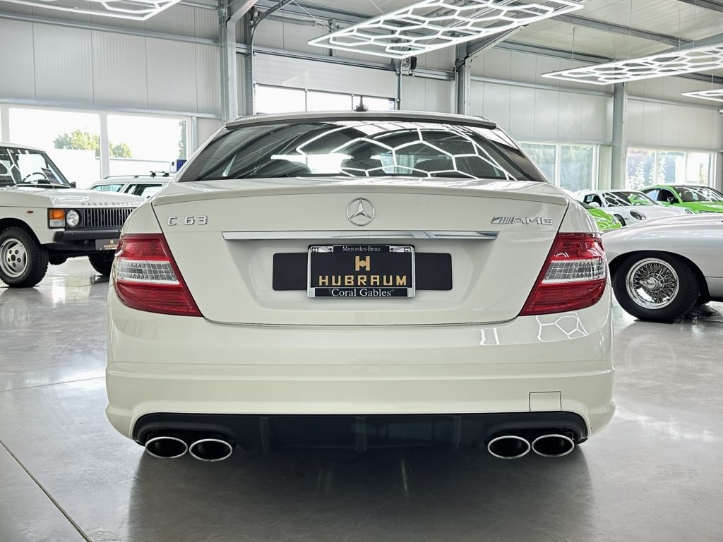 Es handelt sich um ein unfall- und nachlackierungsfreies Fahrzeug aus den USA mit belegbarer Historie und ohne jeden Makel. Seit vielen Jahren ist dieser C63 AMG obendrein vollständig PPF foliert, um den Originallack in Calcitweiß zu schützen.