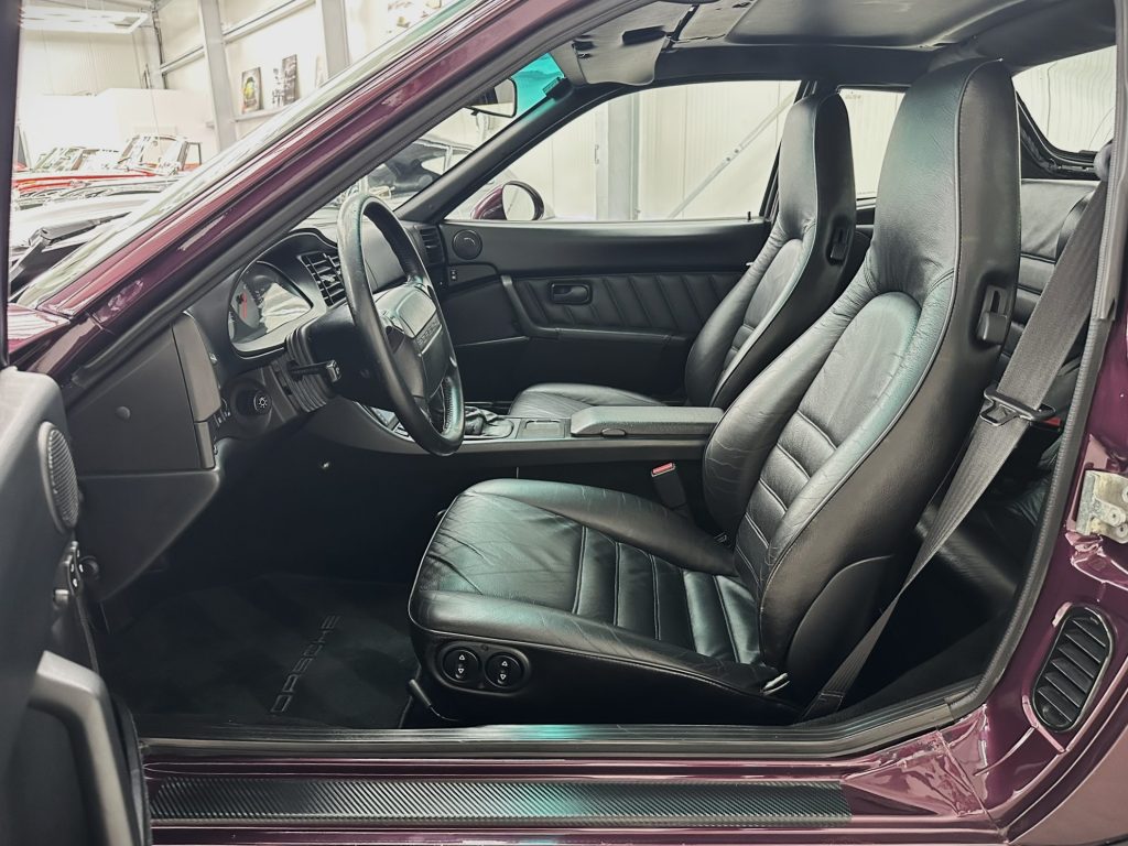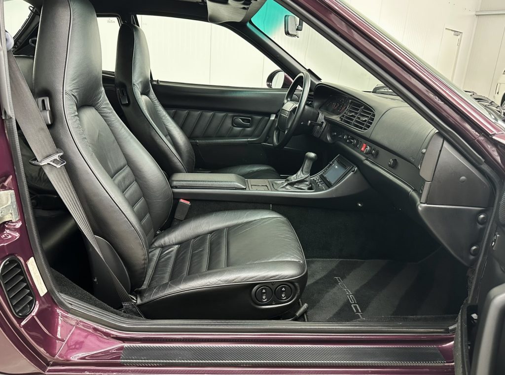 Porsche 968 Coupé Targa mit 6-Gang Schaltgetriebe in der seltenen und eleganten Sonderfarbe amethyst Perl metallic mit Innenausstattung Vollleder schwarz
