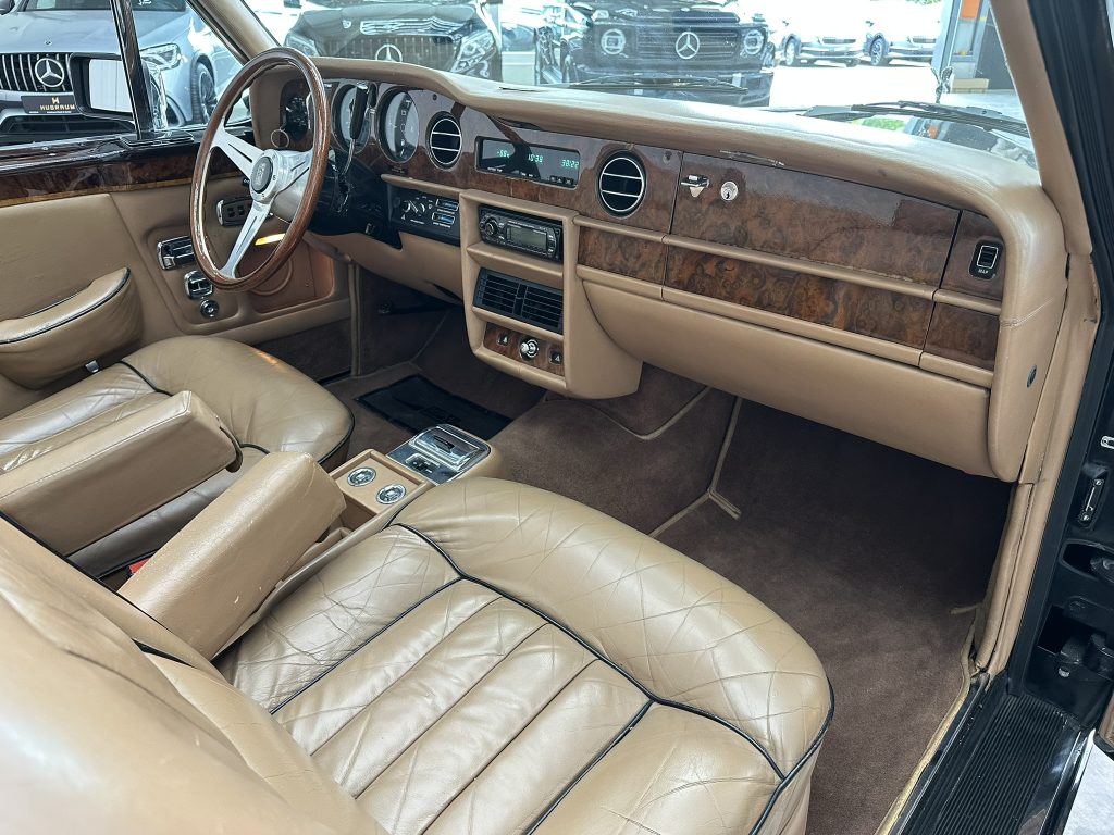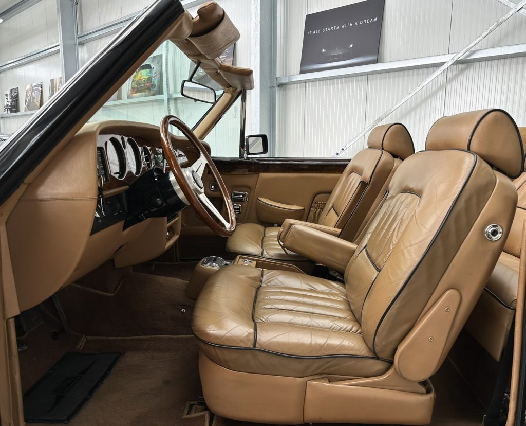 Dieses Exemplar beeindruckt mit einer seltenen und exquisiten Farbkombination: Tiefschwarzer Lack, der die majestätische Linienführung betont, gepaart mit einem warmen hellbraunen Interieur, das Luxus und Raffinesse ausstrahlt. Das Fahrzeug zeigt die Spuren der Zeit in Form einer authentischen Patina – ein Zeichen seiner bewegten Geschichte und seines Charakters.